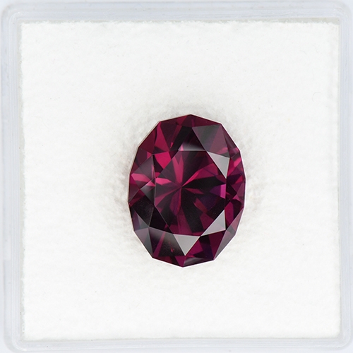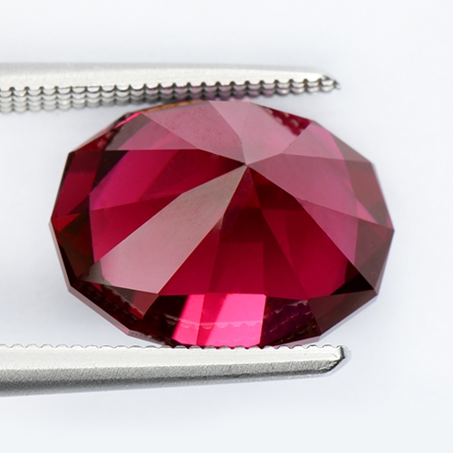 This 6.15-carat Rhodolite Garnet showcases a velvety red hue, captivating with its flawless clarity. Its oval brilliant cut accentuates the stone's allure, complemented by excellent cutting techniques. With its flawless perfection, this gemstone embodies the epitome of elegance and beauty, appealing to gem enthusiasts and connoisseurs alike.