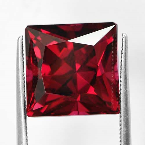This Rhodolite Garnet, cut in a princess style, showcases a gorgeous cabernet red color. Its flawless clarity adds to its mesmerizing allure, making it a captivating gemstone that exudes beauty and elegance. At 16.18 carats it commands a real presence.