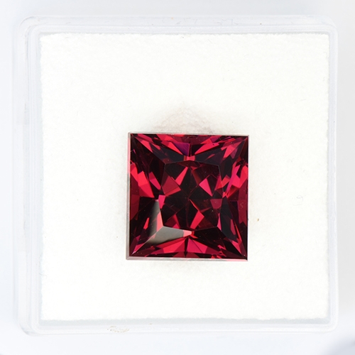 2 / 2 This Rhodolite Garnet is a stunning gemstone with sumptuous deep red hues that are accentuated with hints of purple. Its beautiful princess cut enhances the gemstone's natural brilliance, giving it an eye-catching sparkle. The flawless clarity of the gemstone makes it even more special, allowing for the deep red hues to shine through without any impurities. Whether as a statement piece or as an accent gemstone, this Rhodolite Garnet is sure to add a touch of luxury to any jewelry collection.