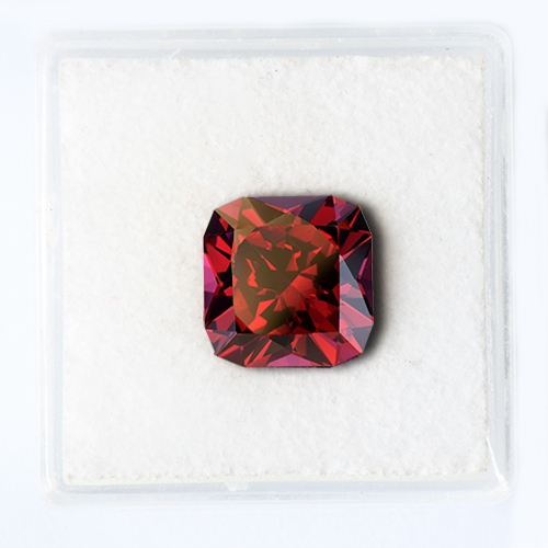 Gorgeous! Top color material from the renowned Umba Valley in Tanzania. Intense red hues with a demure pink/purple modifier. Plenty of life and brilliance due to excellent cutting - the Radiant cut sets off the sparkle beautifully. Flawless. Wonderful.