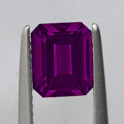 Although technically classed as Rhodolites, these special stones have some unusual and unique properties. They exhibit a rich grape hue under cool daylight but under incandescent they display an intense cranberry red with flashes of magenta. Lab analysis of the absorption spectra shows the main absorption bands dominating the green-yellow regions of the visible spectrum. Additionally, two strong blue and red transmission regions combine to produce an eye-visible purple color, and also account for the strong color change under different light sources.