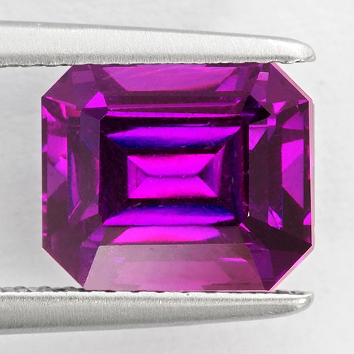 Although technically classed as Rhodolites, these special stones have some unusual and unique properties. They exhibit a rich grape hue under cool daylight but under incandescent they display an intense cranberry red with flashes of magenta. Lab analysis of the absorption spectra shows the main absorption bands dominating the green-yellow regions of the visible spectrum. Additionally, two strong blue and red transmission regions combine to produce an eye-visible purple color, and also account for the strong color change under different light sources.