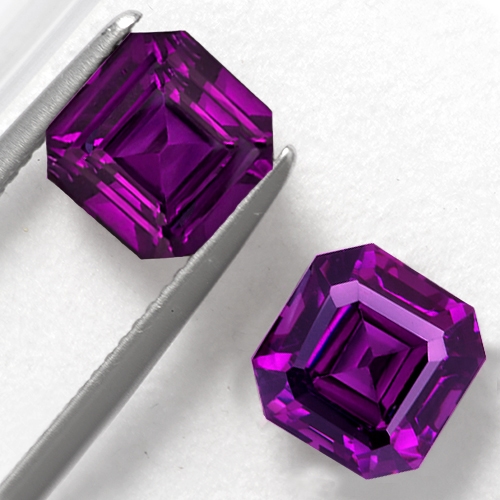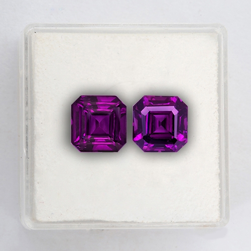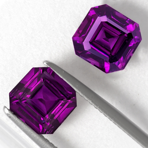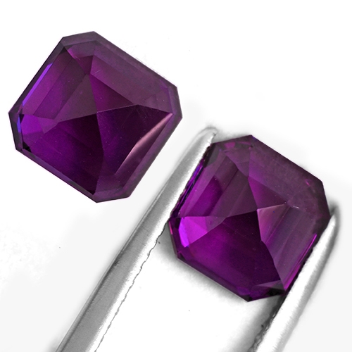 This startling matched pair of extremely rare Royal Purple Garnets hails from the original strike in 2016 in Mozambique. The deposit is all but mined out now and only produces small stones very sporadically. Royal Purple Garnet has become a real collector's stone and sizes like this in this grade are now almost impossible to get and can sell for over $800 per carat easily. This pair is stunning, exuding a mesmerizing intense purple with flashes of burgundy. Absolutely extraordinary.
