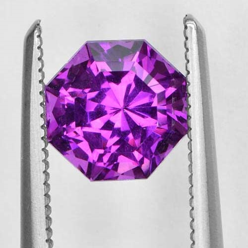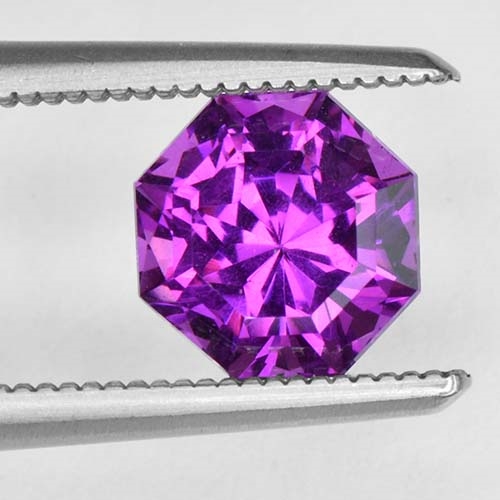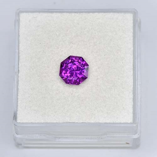 This 1.32-carat Radiant Brilliant Royal Purple Garnet encapsulates luxury at its finest. Measuring 6.36 x 6.26 x 4.45mm, this distinctive piece exhibits impeccable precision cutting, enhancing its high brilliance and showcasing its exceptional clarity. This gem is immersed in opulent, regal purple undertones radiating rich royal hues. Its rarity adds to its charm and exclusivity. With top clarity, it's truly a remarkable exhibit of fine gem quality.