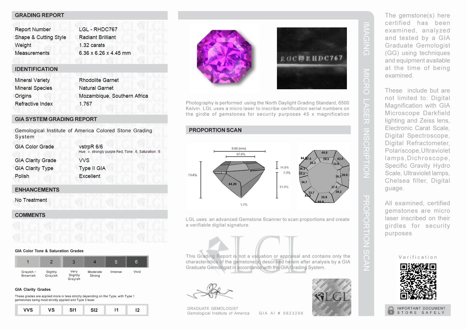 This grading certificate will ship with this gemstone