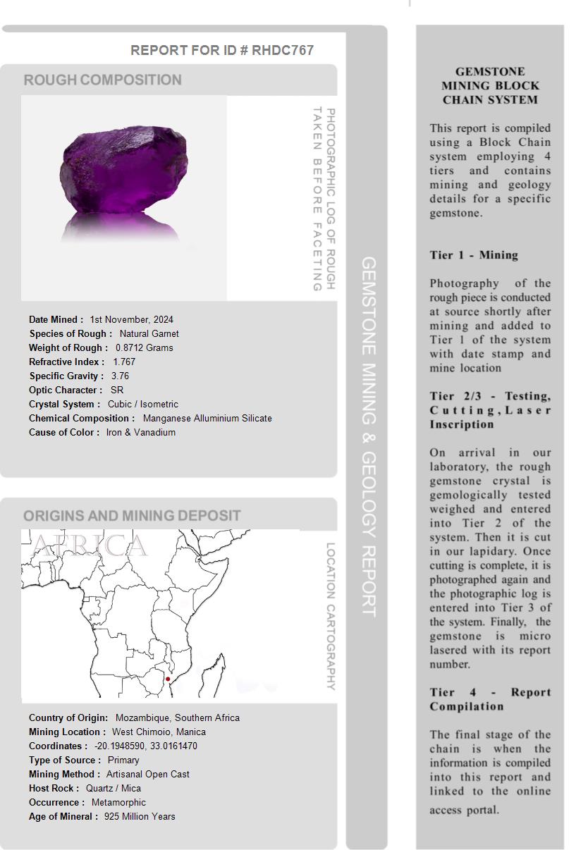 Several unique reports are shipped with this gemstone