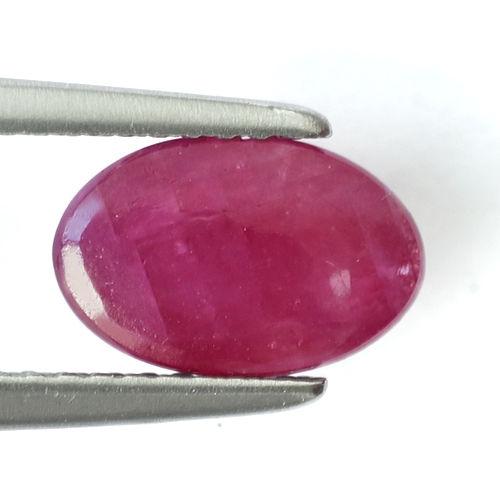This is a very fine Ruby Cabochon. It displays wonderful translucency and actually glows. Excellent color with no zoning. This is a beautiful stone. Would make a superb ring or pendant.