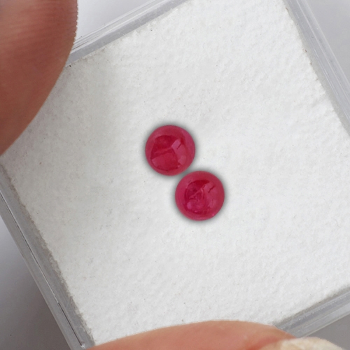 Gorgeous. Small but beautiful! These stones really glow. They both have excellent translucency, approaching transparency and a stunning fine color - red with hints of pink.