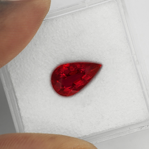 A wonderful, classic Mozambique Ruby. Exceptional color - intense, vivid red. High clarity. This stone carries an independent certificate from GRS (Gem Research Swiss Lab) which is one of the authority labs for Ruby in the world. A stunning stone.