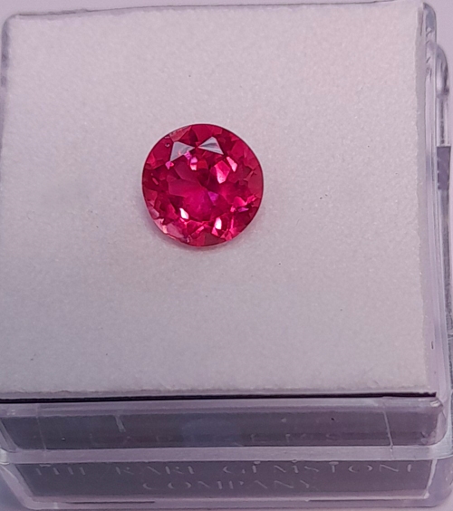 This is a beautiful Baringo Ruby. Classic pink-purple modifier glints from within its sharp red hues. Pleanty of brilliance and high clarity. Gorgeous.