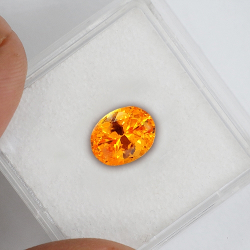 A rare treat. We thought that the renowned Loliondo deposit in Tanzania had been mined out but recently has produced a spattering of beautiful crystals. This is one of them. Exceptional Mandarin Garnet featuring the most intense orange and explosive brilliance due to the gem types high refractive index. With the Namibian and Nigerian Mandarin Garnet deposits mined out, this is rare opportunity to grab one of these amazing stones before they disappear again.