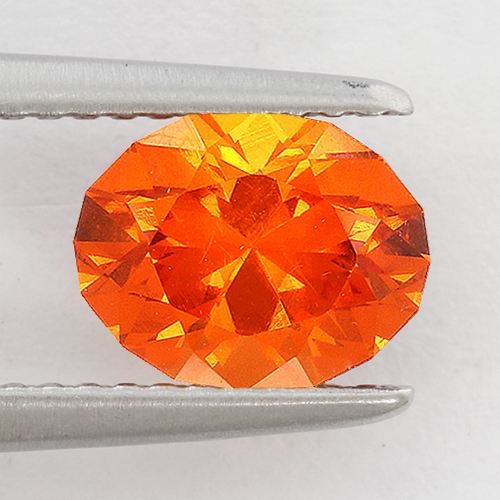 Excellent cutting, plenty of brilliance and reflection, exceptional, very intense "fanta orange" top grade Mandarin color. Superb and rare.