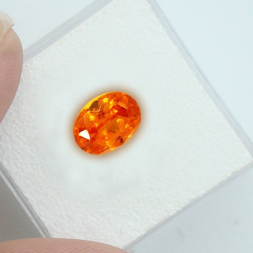 This beautiful gemstone literally "explodes" with light. Spessartite's high refractive index coupled with wonderful luster is very evident in this piece. Absolutely top grade Mandarin color - intense orange. A real beauty from the Loliondo deposit in Tanzania that is all but mined out now.