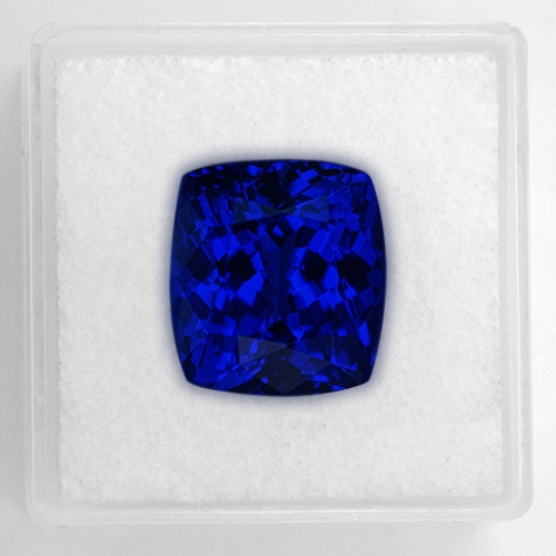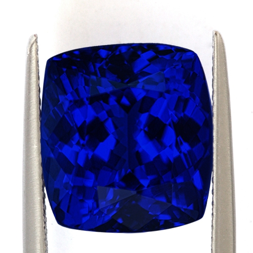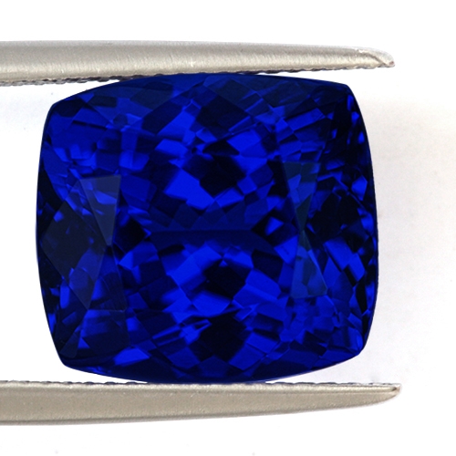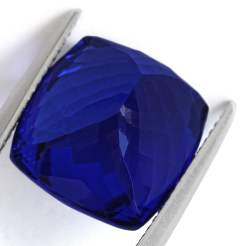 A quintessential investment Tanzanite. If you are looking for a very deep blue Tanzanite in the 10+ carat range, look no further. This amazing 12.63 carat cushion is exceptional. Like gazing into a bottomless pool, the color is unfathomable - an ethereal, almost velvety blue, exploding into a kaleidoscope of reds and pinks when held under incandescent light. Flawless and beautifully cut. A truly rare piece.