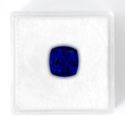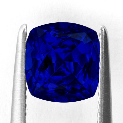 Tanzanites in the 2 carat range are generally pale colors. This is a general feature of the gem type - smaller stones tend to be fairly low saturations. However, occasionally a miner will discover a smaller crystal with exceptional color saturation and this particular piece was one of these. Tanzanites in the 2 carat range with true vB 6/6 colors are extremely rare and that is what makes this piece so special. Exceptional color - cut directly on the blue axis with intense saturation and optimal tone yielding the most beautiful "Cornflower" blue. Top cutting and flawless clarity. Superb.