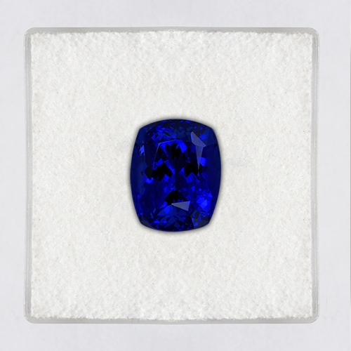 It is hard to over-state the pedigree of this Tanzanite. Suffice it to say that colors like this are almost never mined in this size range. Those who have searched for top saturation intensity in 2 carat sizes can attest to the dearth of them in the market. That is why this 2.93 carat cushion cut is so exceptional. The color has to be seen to be believed. The tone and saturation are absolutely optimum and the result is spectacular. The very finest color pedigree, flawless clarity and excellent cutting. A classic Block D "top 1 percenter". Superb, they don't come better.