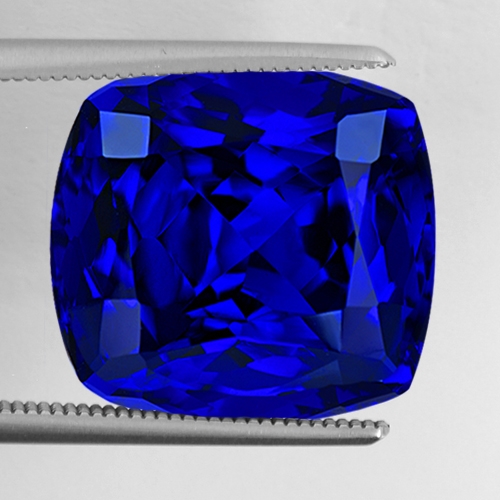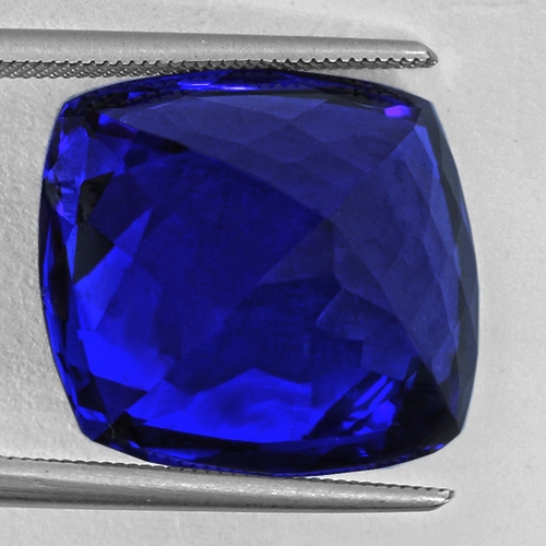 Utterly outstanding and a true investment grade Tanzanite. Surpassing even the very finest Kashmir cornflower blue Sapphire, this ethereal 20.78 carat cushion cut piece is a joy to behold. This stone quite simply displays the deepest most intense and vivid color saturation possible. Flawless and professionally cut. Sitting firmly above the 20 carat benchmark many investors covet, this is an extremely rare and extremely beautiful Tanzanite of the very finest pedigree.