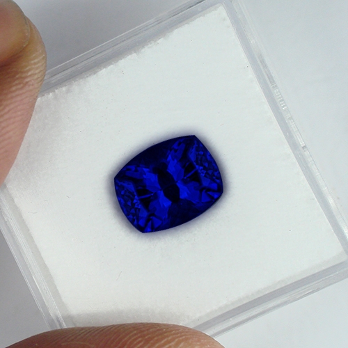 Brilliance and color intensity define this exceptional Block D long cushion Tanzanite. Wonderful sparkle combined with optimum depth of color - a vivid, highly intense blue and flawless clarity make this a very fine Tanzanite indeed. Rare in this quality these days.