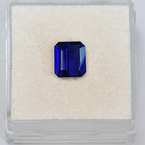 They simply don't come better, period. Colors like this are an extreme rarity but in a 1 carater, even more so. This exciting 1.92 carat Emerald Cut is the pinnacle of Tanzanite quality. The color has to be seen to be believed- an intense royal blue with incredible intensity. Move over the pale purples that you usually see in the 1 carat ranges, this one would put a Kashmir sapphire in the shade. It is beautifully cut and it is flawless. A really rare and truly beautiful Tanzanite.