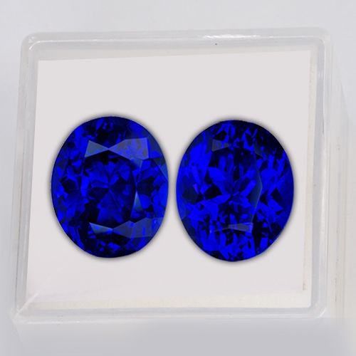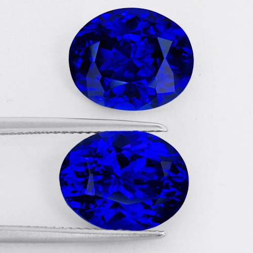 They simply don't come better than this scintillating pair of the very finest Tanzanites. Their velvety blue hues are set off by excellent cutting which releases their inner fire to great effect. Their color is superb - firmly in the top 1% mined - an almost velvety blue with optimal tone and saturation levels. Under incandescent light, they virtually "explode" with red flash - lovely crimsons and reds scintillate within the stones. Flawless clarity. Really very beautiful and very rare.