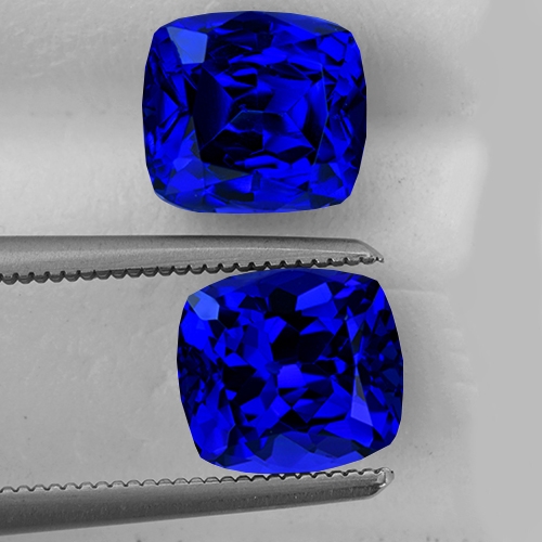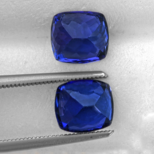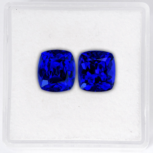 Extraordinary. What a superb pair of Tanzanites. You don't see Tanzanite often that looks like this. The color is a regal, intense Royal Blue with plenty of sparkle and intensity. Both stones are flawless. If you are looking for a pair of cushion Tanzanites and want only the best, then don't look any further.