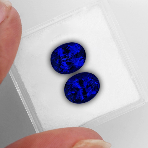 They don't come any better than this. Simply outstanding in every respect. Perfectly matched, both stones boasting the most intense color possible in Tanzanite. Solidly in the top 1% of crystals mined without doubt. Extremely intense color, flawless clarity and excellent cutting. An investment grade matched pair of ovals from the renowned Block D mines.