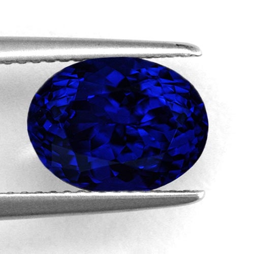 These don't come along every day. Tanzanites in the 4 carat range which are commonly available in the market are generally medium grades with a somewhat desaturated color. When miners find crystals of this size which display top color intensity it is causes great excitement. This exquisite 4.04 carat oval mixed brilliant cut shows why. A truly superb, rare Tanzanite. Freshly mined from the renowned Block D mine, this stone is unparalleled. Cut directly on the blue axis, it exudes a high intensity, almost alive blue. In incandescent light red flash fills the stone. Flawless, beautifully cut. An exceptional Tanzanite in all respects.