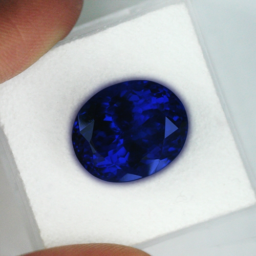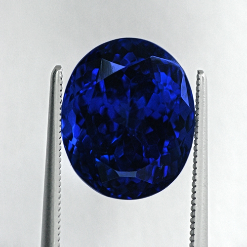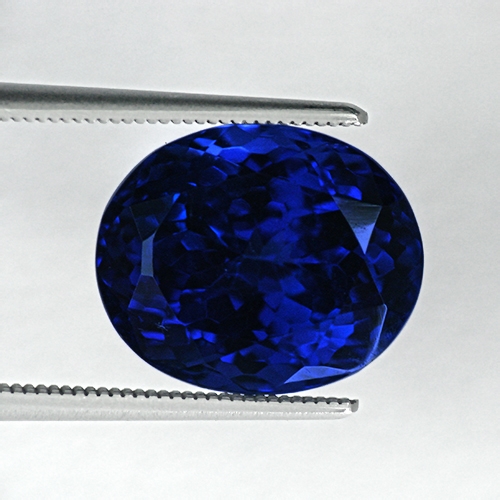 An exceptional royal blue of the highest intensity. This stunning 9.35 carat Oval Brilliant sits firmly in the "top 1 percenter" category of Tanzanite. Flawless and ethereal, it truly mesmerizes. The "Kashmir Sapphire" cornflower blue hue highly coveted in the finest Tanzanites is solidly present here. It exhibits explosive red flash in incandescent light with a kaleidescope of reds and pinks being unleashed within the stone as yellow light hits it. Wonderful. It reflects light well and is flawless. Truly gorgeous and very rare these days.