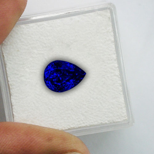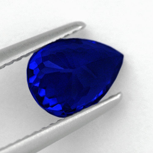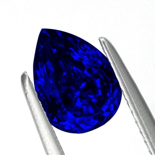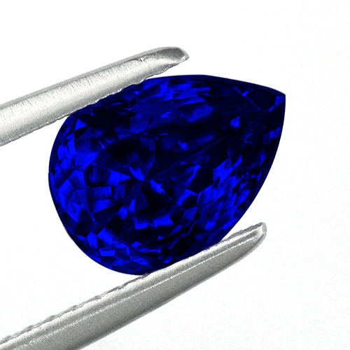 Stunning. In the 1 and 2 carat size ranges, Tanzanite tends to be very pale in color - usually a medium to medium-low grade lavender. This lovely pear shape bucks the trend however. Its color is truly exceptional; cut on the blue axis, explosive red flash and optimal color saturation rarely seen in a 1 carat stone. Flawless clarity. Superb.