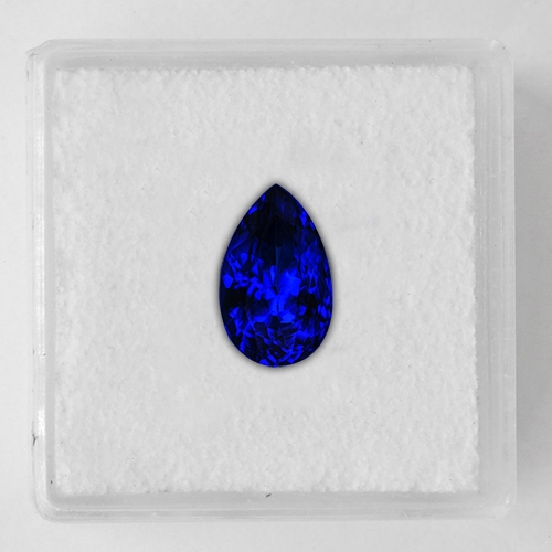 A recent strike in Block D of the Tanzanite mines yielded a pocket of the deepest colored Tanzanite crystals possible. This is not unusual for Block D - what was unusual was the crystals were small. It is very rare to find small Tanzanite crystals of top Block D color. We bought up most of the rough from this production and cut a suite of exceptional 1 and 2 carat pieces from it. This exceptional piece is one of these. Mesmerizing intense blue, top Block D color, clean and bright. Very rare.