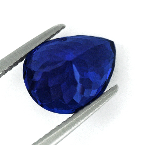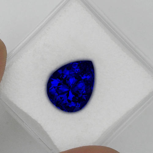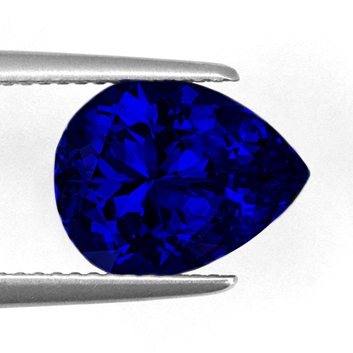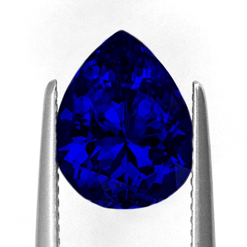 Cut on the blue axis and radiating an overwhelmingly deep, intense color, this superb pear shape is an outstanding example of a Block D top grade Tanzanite. It is extremely rare to find Tanzanites in this size with this quality of color. Flawless and well cut - a rare and exciting stone.