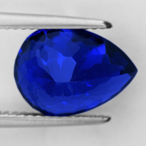 Simply as good as it gets. Cut directly on the blue axis, so if you like your Tanzanite looking like top grade blue Sapphire, this is the stone for you. Bursting with brilliance, yet exuding an almost velvety "cornflower" blue from its depths. The color in this exceptional Tanzanite is overwhelming and crystals of this color intensity are rarely mined, constituting less than 1% of total Tanzanite production. Flawless. Truly exceptional.