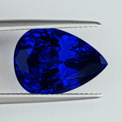 A quintessential investment Tanzanite. If you are looking for a very deep blue Tanzanite in the 8-10 carat range, look no further. This amazing 9.00 carat Pear is truly exceptional. Like gazing into a bottomless pool, the color is unfathomable - an ethereal, almost velvety blue. These colors are extremely rarely mined and we spend a great deal of time working with the miners to secure them. The stone glitters withe life and is flawless and beautifully cut. A truly rare piece.