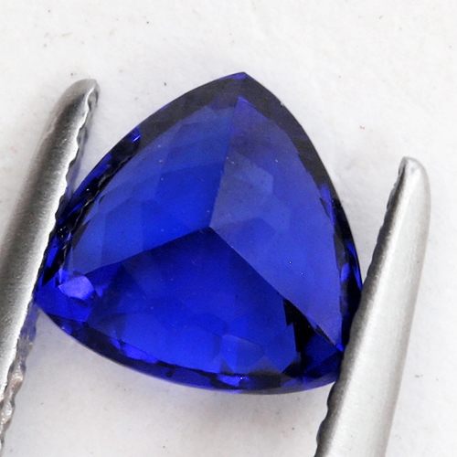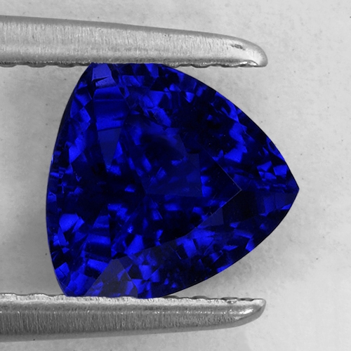 It is very rare to find small Tanzanite crystals of the very top color grade. This piece bucks the trend however. It hails from a recent strike of very fine crystals at the renowned Block D mine. We bought up most of the rough from this recent strike. We cut a suite of exceptional 1 and 2 carat pieces from it. This exceptional piece is one of these. Mesmerizing, extremely deep color saturation, the finest top Block D color, clean and bright. Very rare.