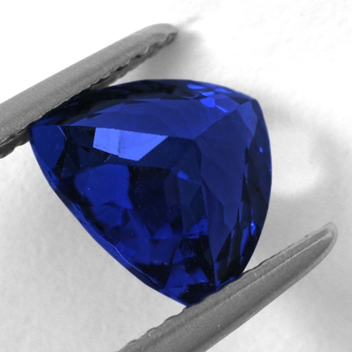 A classic Block D Tanzanite. This wonderful trillion is cut on the blue axis – a superb intense blue, deeply saturated color. It's actually very rare to find Tanzanites in the 2 carat range with this level of color intensity and saturation as any Tanzanite aficionado is aware. Plenty of brilliance and life and flawless, it is a very rare and extremely fine, top grade Tanzanite in all respects.