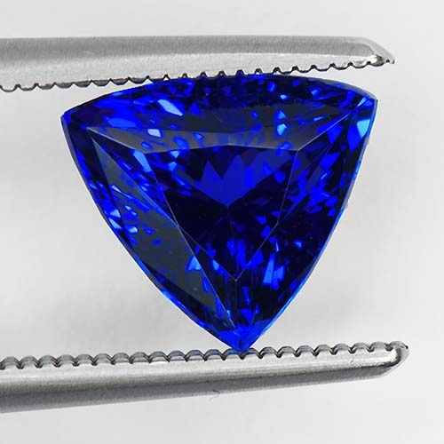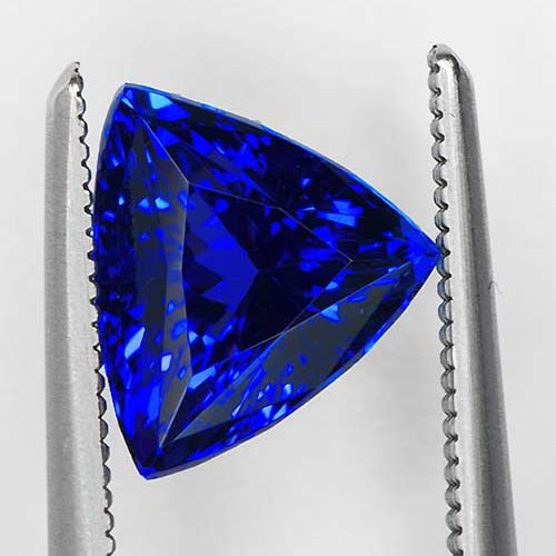 Tanzanites in small sizes are so rare in top colors that some people don't believe they exist at all. They do, but they are rarely mined. Being based at the mouth of the mine allows us to snap these up on the rare occasion they are found. This superb trillion is a case in point. Cut from a rare crystal of the very deepest color, flawless and very well cut. This is a rare find and a truly beautiful Tanzanite of the very highest pedigree.