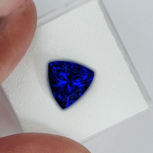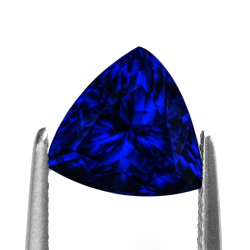 Exciting, scintillating & gorgeous! This stunning Tanzanite Trillion blinks & flashes brilliance in a mesmerizing manner. Gorgeous deep violet and blue with explosions of red flash in incandescent light. Flawless. Absolutely stunning.
