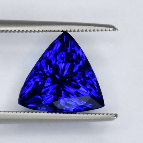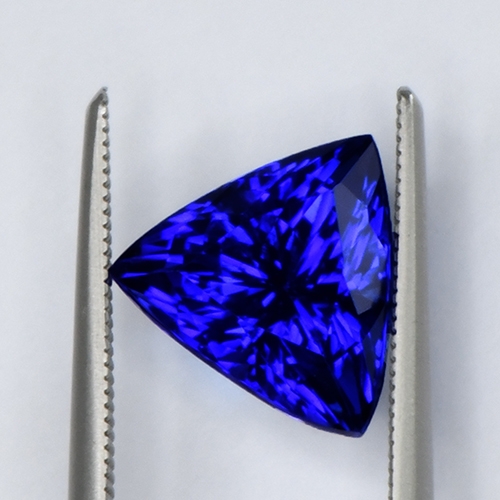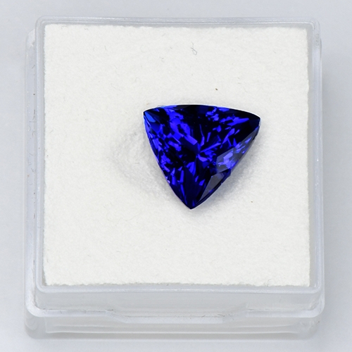 We specialize in the top 1% of Tanzanite mined and this special 4.21 carat trillion is a classic top 1 percenter. "Color is king" when it comes to Tanzanite. The deeper, more intense the color, the rarer and more valuable the stone. This beautiful, rare piece is very firmly in the top 1%. Exceptional color, cut directly on the blue axis, excellent cutting and flawless clarity. A rare and extremely beautiful Tanzanite.