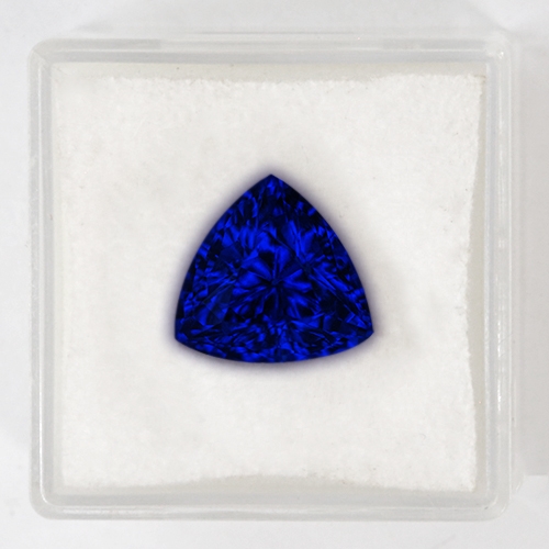 Looking for a very blue Tanzanite in the 4 carat range? Look no further. This stunning 4.70 carat Trillion brilliant is cut directly on the blue axis yielding a dreamy deep "Kashmir Sapphire" color which emanates from the depths of the stone. A Tanzanite to command respect. This piece boasts the very finest pedigree in this gem type. Less than 1% of Tanzanite mined can claim this type of color intensity and purity. Flawless, beautifully cut, truly exceptional. An investment grade piece of the finest order.