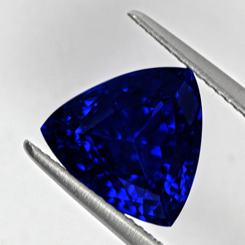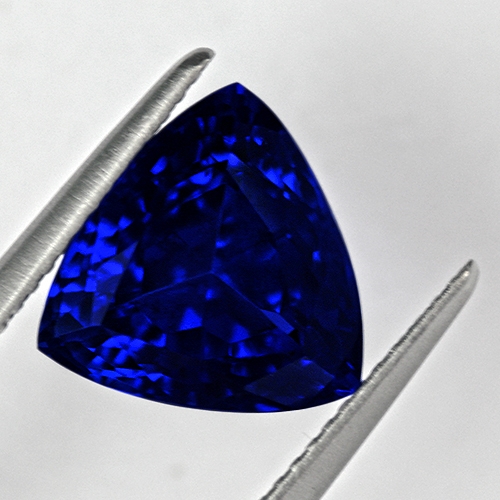 A classic Block D Tanzanite. This wonderful trillion cut is cut on the blue axis – a superb sharp blue, deeply saturated color. Very well cut, with plenty of life and flawless, it is a very rare and extremely fine, top grade Tanzanite in all respects. It would make a stunning pendant or a very eye catching ring!