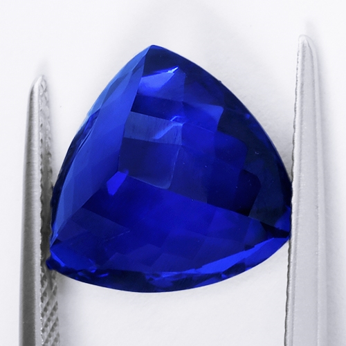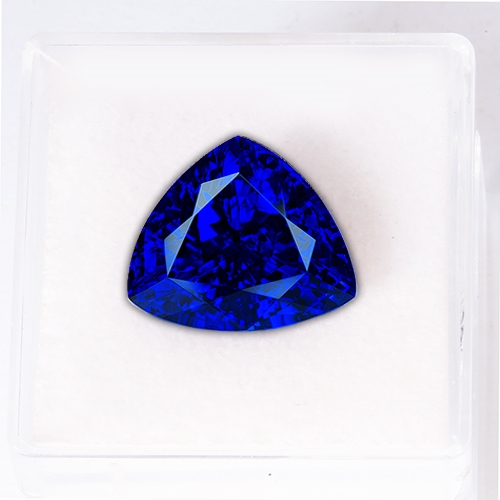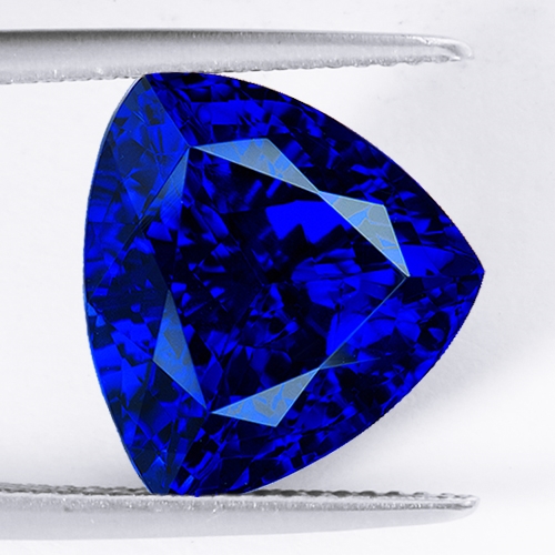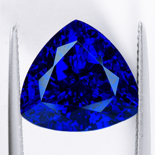 We specialize in the top 1% of Tanzanite mined and this special 8.48 carat trillion is a classic top 1 percenter. "Color is king" when it comes to Tanzanite. The deeper, more intense the color, the rarer and more valuable the stone. This beautiful, rare piece is very firmly in the top 1%. Exceptional color, cut directly on the blue axis, excellent cutting and flawless clarity. A rare and extremely beautiful Tanzanite.