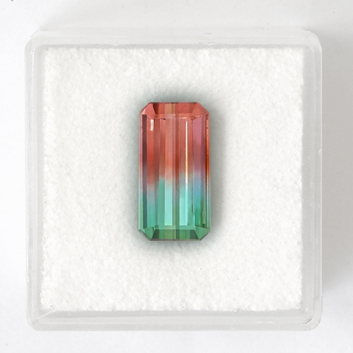 This is an exceptional Watermelon Tourmaline. A perfectly centered dividing line between robust green and red hues, excellent cutting, optimal tone and saturation and high clarity for this gem type. A real beauty.