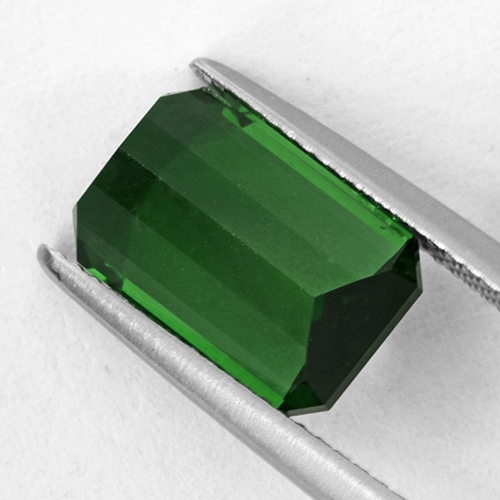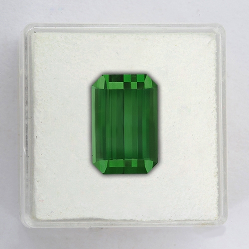 A Tourmaline with real character. Very clean lines grace the facets of this beautifully cut emerald cut with light scintillating off the pavilion facets with gusto. It is a flawless stone with a wonderful classic green Tourmaline hue. Would make a spectacular ring or perhaps a fine pendant.