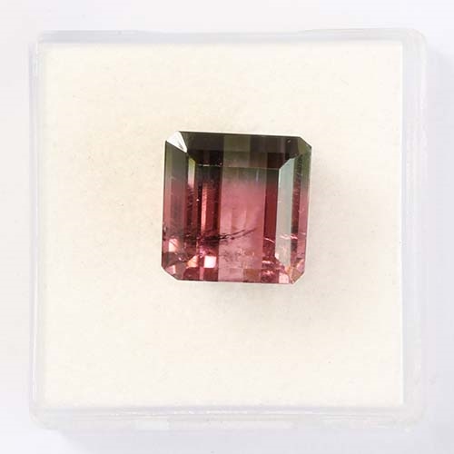 This 7.21 carat Emerald Cut Watermelon Tourmaline is a very fine specimen, showcasing a beautiful mix of watermelon colors. Its high clarity for this gem type (Type III GIA - usually very included) adds to its appeal, enhancing the play of colors within the stone. The gem's emerald cut accentuates its beauty, creating a mesmerizing display of vibrant hues.