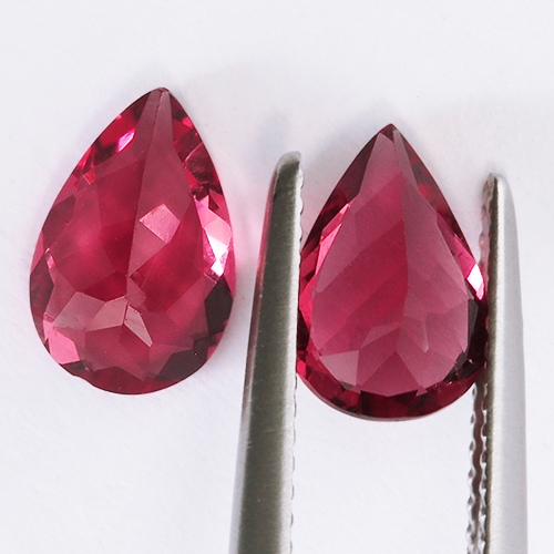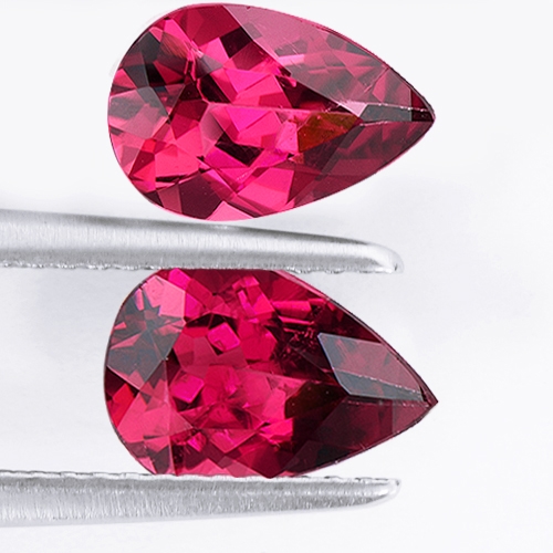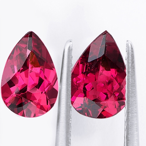 This is an incredible matched pair of top grade Rubellites. Both stones display a classic top grade "Ruby red" hue with top intensity. High clarity for Type III gems - most Rubellite is usually quite included - these are eyeclean and gorgeous.