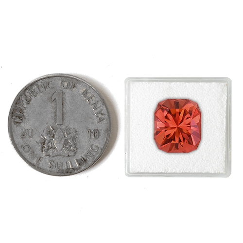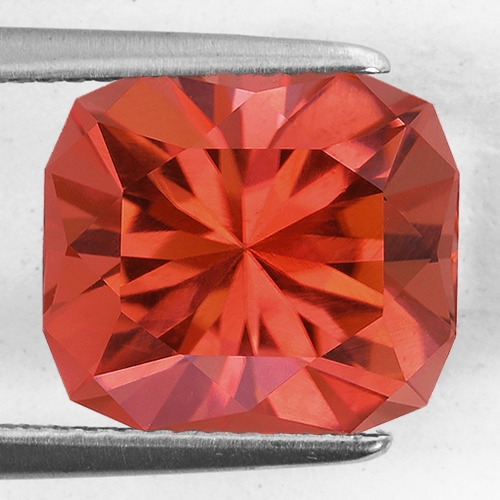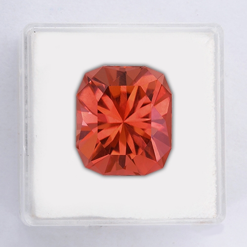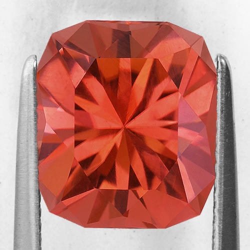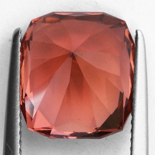 Radiant cuts are... well, radiant and this one is no exception. It literally explodes with brilliance as light bounces off its precision cut facets. This is a very unique Tourmaline with a very beautiful color that you don't often see - an ethereal pinkish orange hue which delights the senses. A flawless Tourmaline with exceptional cutting. Superb.