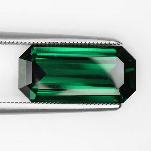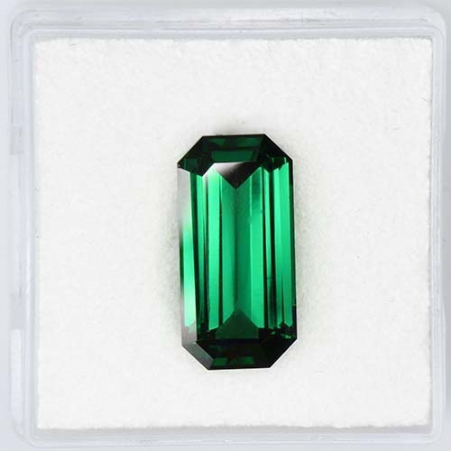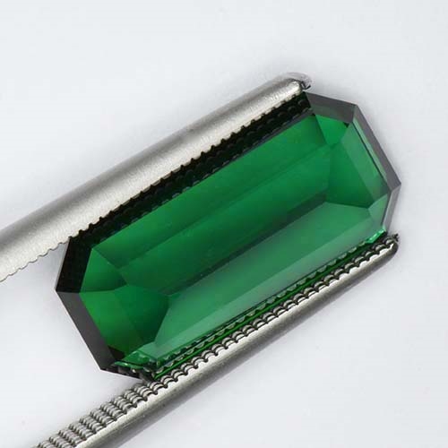 A collector's piece in no uncertain terms. This truly wonderful 5.41 carat sleek Emerald Cut is a superb Tsavorite by any standards. Considering that even a 2 carat piece of this caliber is rare, this piece is an extremely rare find. It is actually one of the first crystals to be found in a pocket in a new mine in the Tsavo area. It's color is superb, balancing brightness and a "Colombian emerald green" effortlessly. Very high clarity, plenty of life. This is an absolutely superb Tsavorite.