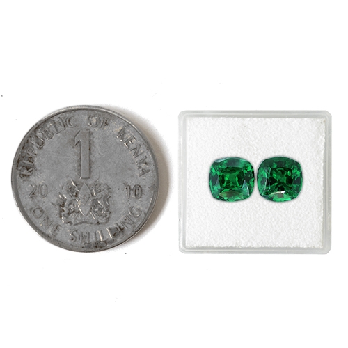 Tsavorite is an ancient gemstone. It was formed before even the dinosaurs walked the earth and was already old when the mighty Mt. Kilimanjaro, Africa’s highest mountain was in its infancy. When you consider that these particular pieces of nature are as old as they are, you begin to understand the incredible history behind them. They began life a billion years ago in what is now a very dry and dusty part of Africa dotted with thorn and acacia trees. This area is called Taita and is adjacent to the Tsavo wild game reserve, one of Africa’s largest, from which it derives its name. The scientific process by which they formed is known as “metamorphism”. As magma pushed its way up through the existing rock the contact between the invading magma and the older rock caused a change to occur. The intense heat (as high as, and exceeding 750 degrees centigrade (about 1,530 degrees Fahrenheit) made the nearby minerals recrystallize into minerals stable at the higher temperature. These Tsavorites were amongst these. The prevailing conditions of pressure and heat remained constant through the ages and this what made it possible for Tsavorite to form. As the rock folded, many of the crystals were crushed, as is the case with most Tsavorite due to the very volatile geological conditions particular to its formation. These particular pieces remained a fairly large size which is unusual – most Tsavorite crystals are crushed down to chippings. They generally form in gneisses or “potatoes” as they are known amongst the mining community. These are balls of hollow host rock with Tsavorite crystals forming in the hollow space. These crystals were most likely amongst the lucky ones that escaped the crushing action of the folding rock in an intact potato. They were carefully extracted from their home of aeons by miners using delicate chiseling tools. They made their way through a network of mine brokers who ferried them to Nairobi. The brokers brought the crystals to their assigned office at Lapigems Gem Company where they were cut into what you see today. They are a very special and very rare piece of nature.
