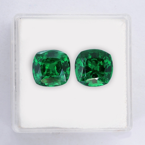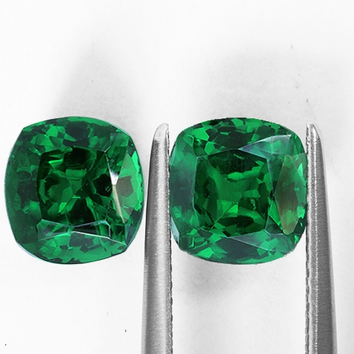 They simply don't come better! This very exciting matched pair of exquisite velvet green Tsavorites is the pinnacle of Tsavorite beauty and rarity. Pure green hues, with no modifier mean that these gorgeous stones resemble the very finest Columbian emeralds. Both stones literally glow with brilliance and life. Very high clarity and excellent cutting. Truly exceptional.