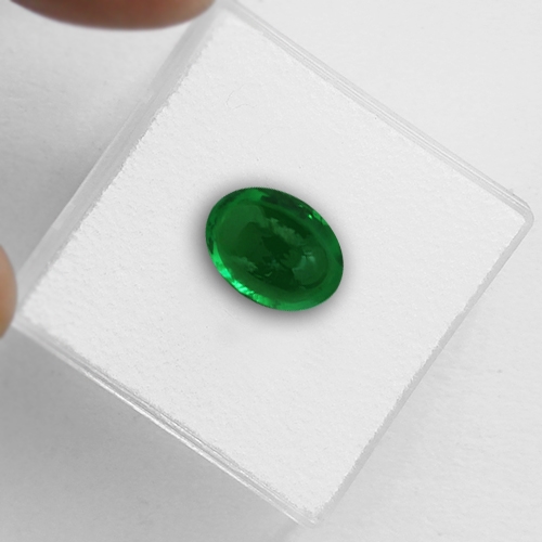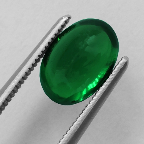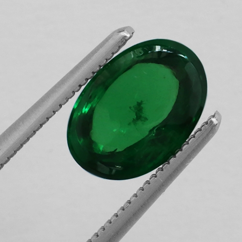 A very beautiful, fine Tsavorite Cab. We cut cabochons when a gem may have too many inclusions to effectively cut a faceted gem. The cabochon is designed to reflect light off the surface rather than take light in and reflect off the back facets and back to your eye, as with a faceted gem. This is actually very clean for a cab -in terms of clarity, with only a single inclusion. This gorgeous piece boasts top Tsavorite color - a wonderful pure, deep green. It is a beauty.